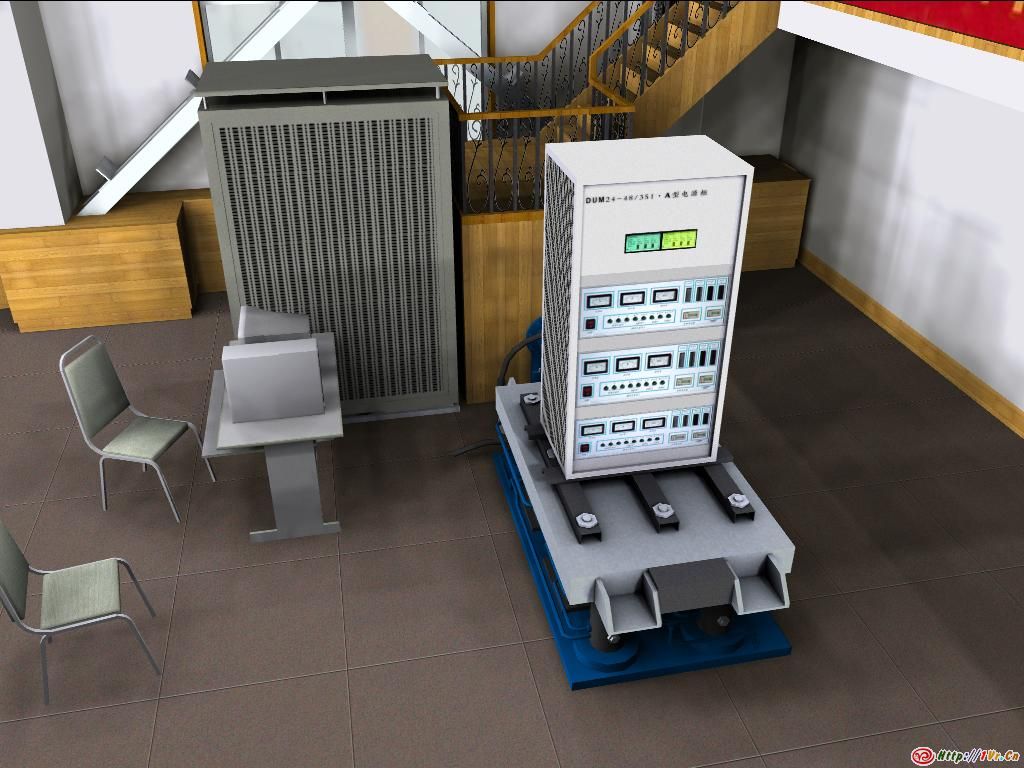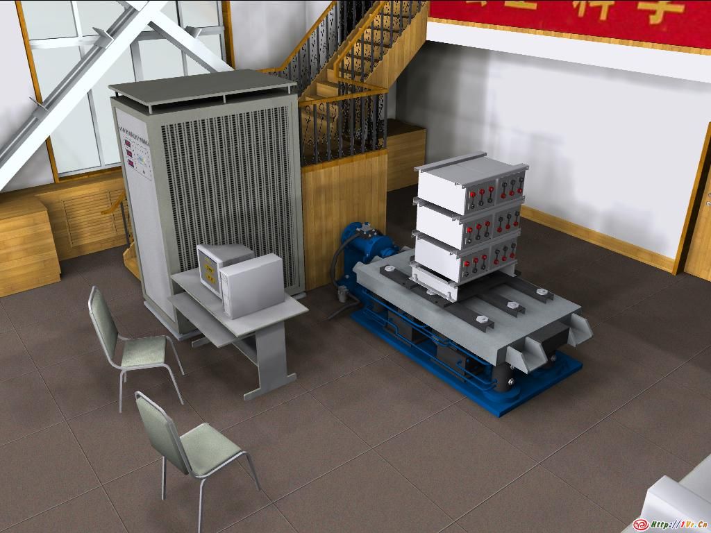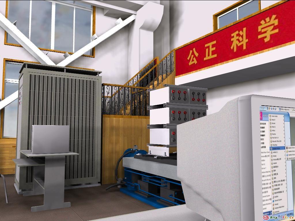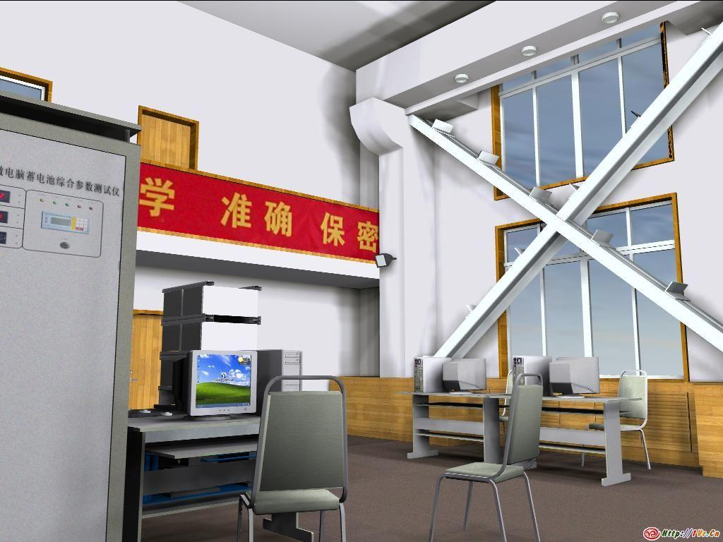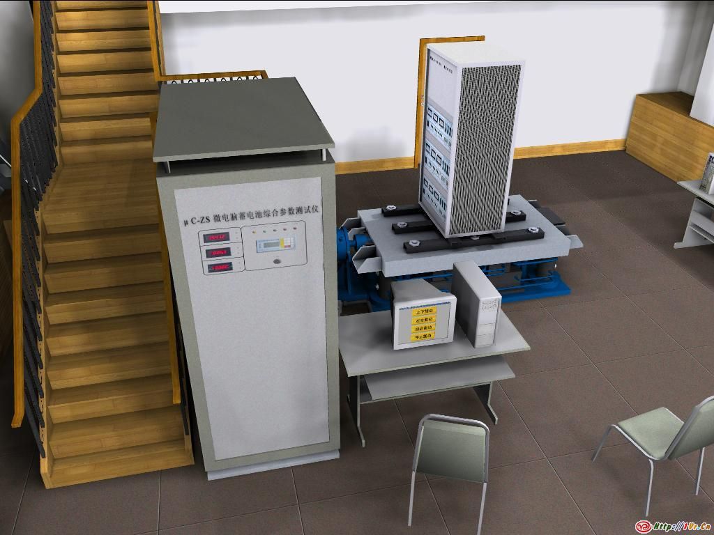 Vrml虚拟部分:依旧利用Vrml多重纹理扩展节点为重点技术,使用简单的渲染烘托实验室庄重严谨的气氛.利用Vrml脚本技术构造了可进行与蓄电池测试设备交互试验操作的功能,可即时更换试验设备,生动形象环保的演示了进行试验的过程.