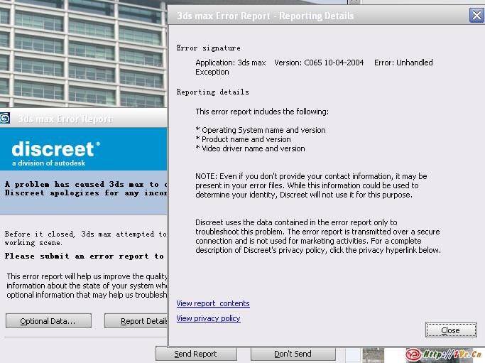 我的系统是WIN XP SP2..求救啊..求救啊..发送错误报告给DISCREET了.下载错误数据包