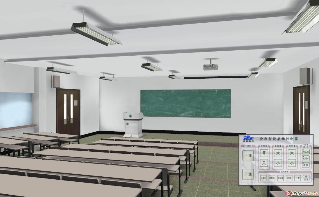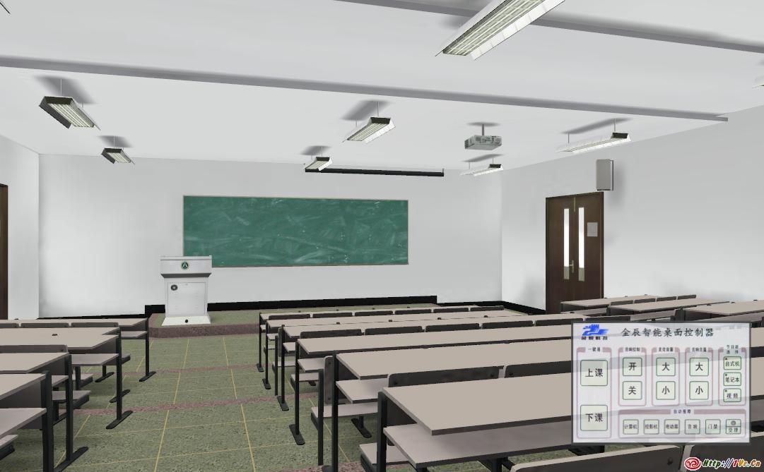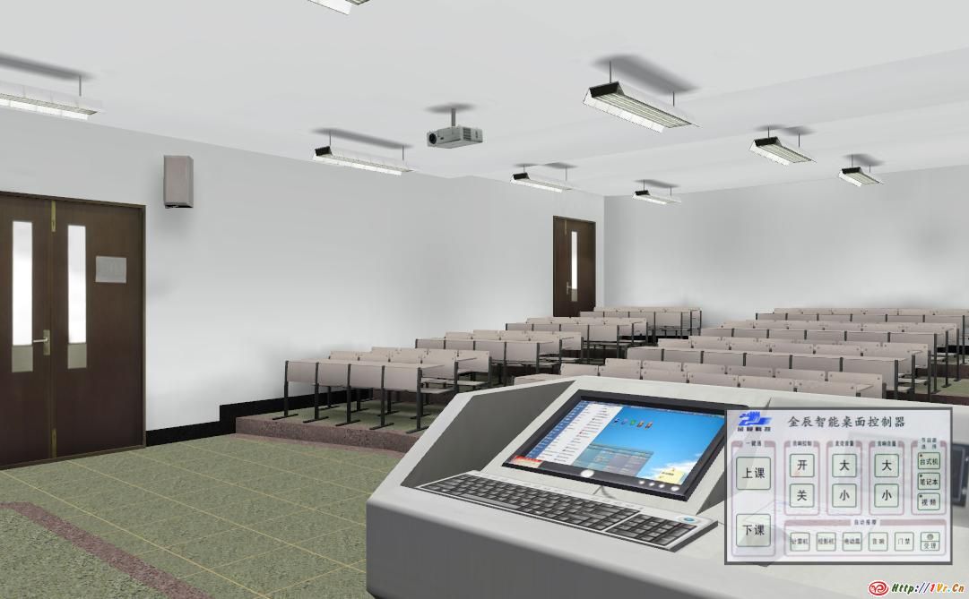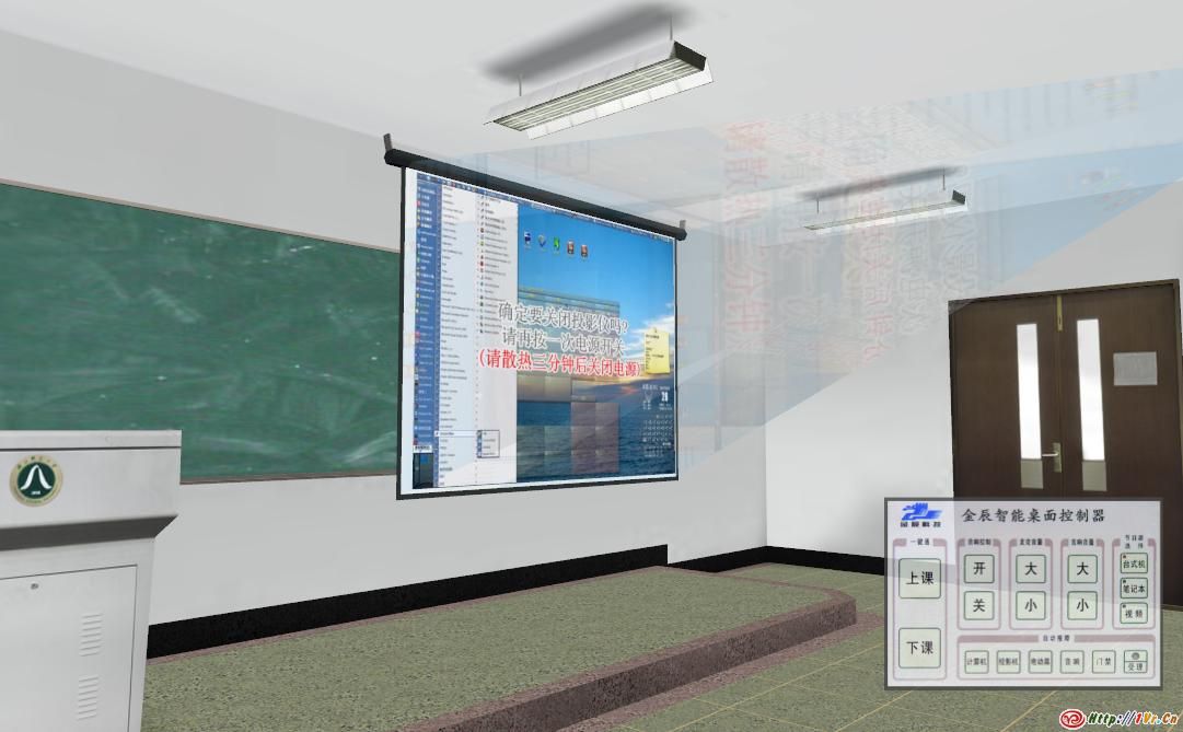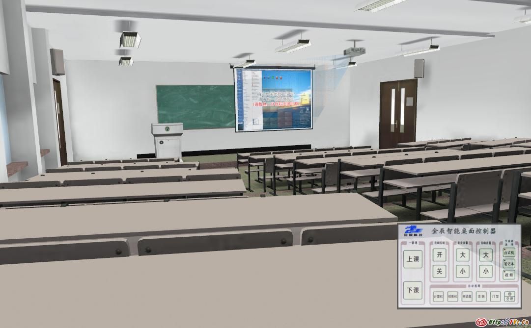 此演示实现了投影机的虚拟模拟,当靠近投影仪的时候,屏幕右下角弹出控制菜单,可以进行投影仪的开关,亮度调整,梯形调整,聚焦调整,图像大小调整等等模拟.本例以NEC VT770投影仪为原型进行虚拟仿真.投影仪后方的插口均有提示说明,方便学习使用投影仪.
