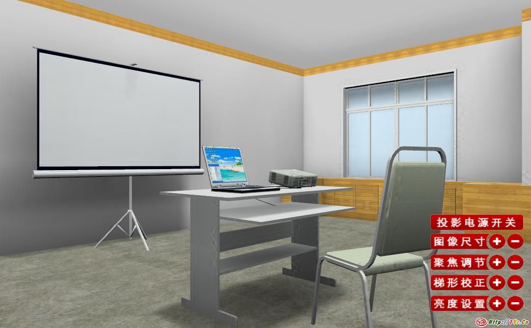 此为模拟投影仪操作使用的虚拟演示,采用Vrml+Js结合技术制作而成.产于二○○七年八月.