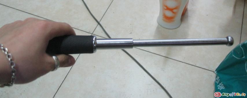 开棍的威慑性强于阻力棍。特别是老版的手拉开棍性能,滚珠强力清脆的开棍声令人不寒而栗。钢体平均硬度稍稍弱于阻力钢棍的45平均硬度。虽然开棍后棍身有些摇晃,但是绝没有解锁的可能,而收棍则无与伦比的方便,棍尾按钮一按,棍头轻轻手掌一拍即可缩回。