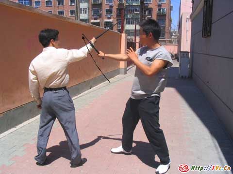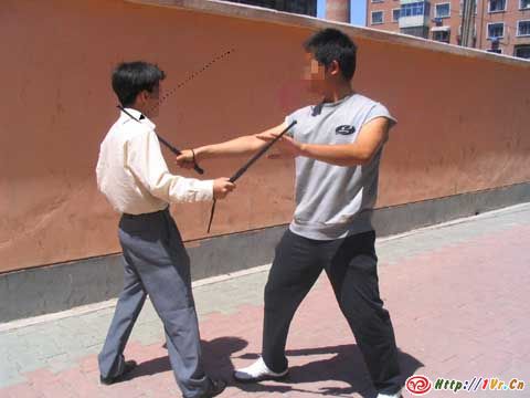 收棍的问题分为三种情况,对于锁死收棍,参考以上两种解法。正常甩开收棍,只要遵守垂直寸劲原则即可,没什么好说的。我想交流探讨的是第三种安静柔和收棍法。