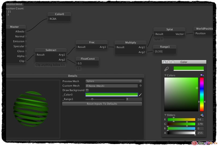 可视化Shader着色器编辑器插件,可以可视化的,拖拖拉拉的创建你想要的各种Shader,即时预览,保存,导入,导出,新建.功能可谓强大.