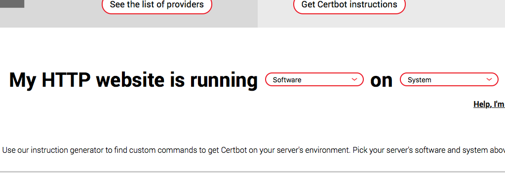 在cerbot官网选择对应服务器软件及系统版本即可自动跳转到指引教程,非常易用:
