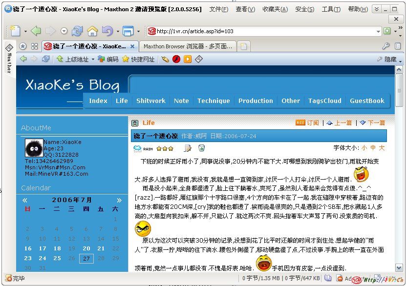 不错Bug真多,用了一两次已经非法关闭几次了.风格和IE7很像.呵呵,估计是跟微软Vista的脚步呢.