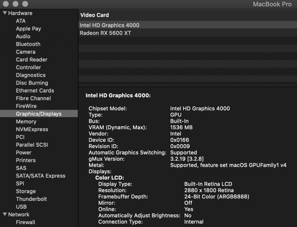按住option(alt)键重启系统,看到引导盘符选择后选择优盘引导,进入到系统后从系统报告中可以看到内置独显消失了: