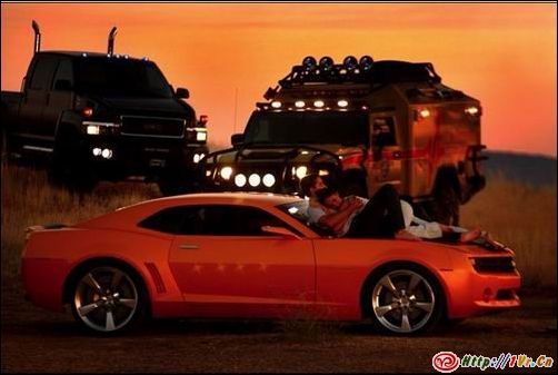1969年,雪佛兰第一次推出Camaro,在随后的三年,Camaro竟然卖出了699,000辆,成为当时名副其实的大众跑车情人。片中用的是2006款的Camaro概念车,它拥有更高级的配置和更现代的设计。通用的LS2 V8全铝合金发动机暗示着充沛的动力,400匹马力,通过6前速手排输出到22英寸轮圈的运动后轮,时刻准备融化马路的沥青。值得一提,这款LS2 V8引擎装备了Active Fuel Management (AFM)的气缸管理技术,这其实就是通用汽车著名的DOD(Displacement on Demand)技术,它可以根据发动机工况和车辆需要,瞬时关闭一半的气缸,达到省油节能的奇效。