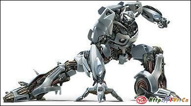 答:每一个变形金刚都是一个挑战(哈哈~~~),就像拉扯14个小屁孩一样(啊哦,这就是说电影中将出现14个变形金刚!)。我们刚弄好这一个,又得赶场去修理另一个爆炸中的机器人。每个机器人都有成千上万个部件,这种复杂程度的制作是我们以前从来没有经历过的。在所有金刚中,擎天柱(Optimus Prime)、威震天(Megatron)和铁皮(Ironhide)是难度最大的。擎天柱是因为它是主角英雄(所以要求更细致);威震天是因为它那异常复杂的铰链式结构(汗,看起来老让俺想起《魔戒》里的树胡……)。至于铁皮,光它那两杆大烟枪就比某些变形金刚本身还更复杂……