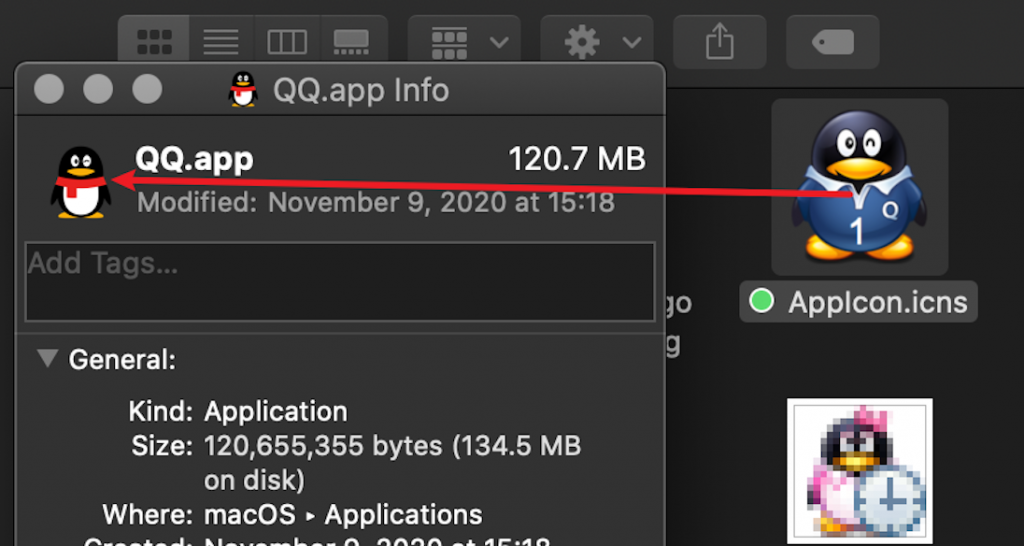 不过我一直觉得红色都企鹅图标无论是身材还是颜色上都不如蓝牙版的企鹅好看,也一直随着QQ版本升级更换着图标的颜色,不过随着macOS的安全机制完善,更换图标的操作也有了一些变化,今天就写下简单流程吧,从官网下载最新的QQ,安装到应用程序目录,然后下载蓝衣企鹅图标包,下面的链接: