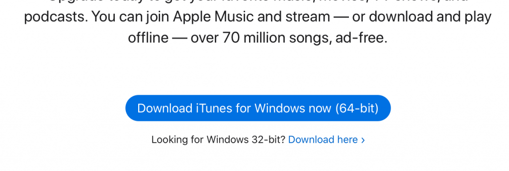 去Apple官网下载iTunes12,网址:https://www.apple.com/itunes/,找Windows下载或看到”Looking for other version?”选择Windows下载iTunes安装.