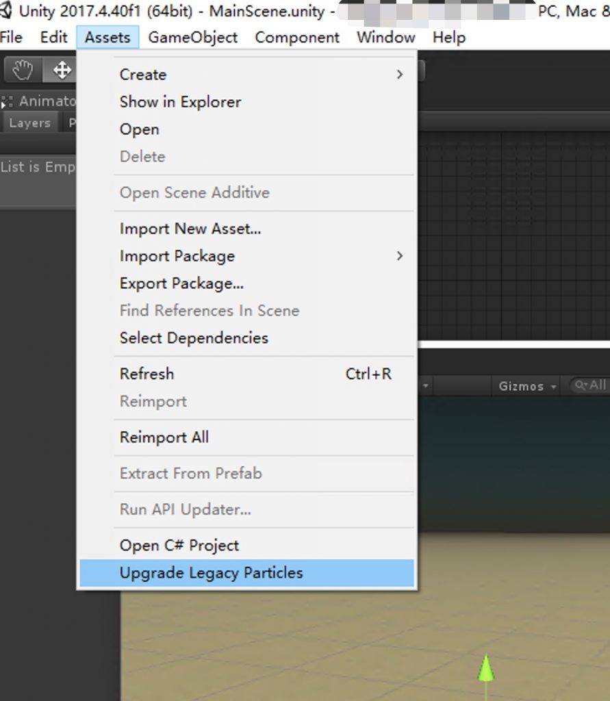 因为Unity2018.2.x之后的版本移除了旧版粒子系统的API,所以要使用Unity2017.4.x~Unity2018.2.x之间的版本才可以能正常打开有旧版粒子系统的场景,但如果有写粒子相关的程序,那么只能使用2017.4.x以前的版本.将升级器的代码(https://gist.github.com/karljj1/58f16e936d13a94ae6a2f741fd271d91)复制保存为Legacy_Particle_System_Updater.cs放在项目的Assets下的任意路径下,也可以直接下载下面的压缩包解压使用: