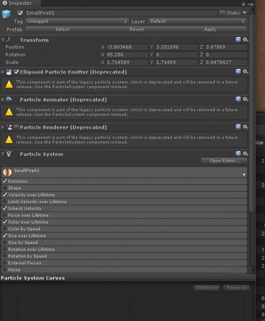 旧组件还在,可以检查差异性,也可以移除调只保留新的粒子系统组件,当然也要更新程序中的API,比如粒子停止是Stop()了.