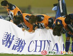 队却因为排名小组第三而惨遭淘汰。但比赛结束的那瞬间,我看见全场日本姑娘基本上都哭了,她们的坚强终于在比赛结束后彻底崩溃,流露出女人脆弱的本性。当全场都在欢呼庆祝日本队出线时,说实话我有点不忍心了。所有的痛责,我觉得不应该让瘦弱的女人来承担。而当日本队拿出横幅绕场一周时,上面写着“谢谢 CHINA”,我再一次被她们的包容姿态感动,甚至是折服了,而全场看见日本队这一举动时也感动的予以日本姑娘热烈的掌声。可以说日本队虽败犹容,而全场最佳也给了日本队表现神勇的门将福元美穗。这个战后缔造“日本奇迹”的民族确实有许多是我们作为新一代中国青年所需要学习的。退场时,我看见看台场地上到处是中国球迷留下的饮料瓶、包装袋,我又不免为中国国民的素质担忧起来。据我所知,来看比赛的,至少坐我旁边的大部分是杭州高校的学生。他们代表的可是中国目前高文化素质的人群啊,如此素质又如何能够与坐了六万人的体育场退场后没有一片瓜果纸屑的日本人比呢。难怪前些日子我在网上看了一个日本人发表的《日本人眼里的中国人》,也对此表示无奈,我们需要真正的强大,而不只是耍耍嘴皮子,趁一时之快。而为什么日本人尊重韩国人而不尊重中国人?或许就像小平说的那样,落后就要挨打,发展才是硬道理。