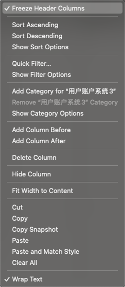 苹果下的Number很易用,可有的时候它缺失的一些功能不是很容易琢磨通透,比方说按字符拆分单元格等.要做表格列的排序,有的表就可以,有的表就不可以,像下面图这样,Sort Ascending和Sort Descending直接灰掉不可用: