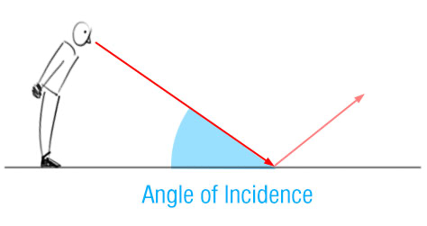 要理解菲涅尔效应,必须先了解反射的基础知识.这里的关键点是Angle of Incidence(入射角度),入射角是视线与正在看的物体表面之间的角度.如下图淡蓝色标记的角:
