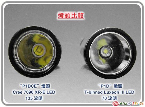 在PC领域,如果没有AMD的强有力竞争,恐怕我们现在还得忍受Intel旧型号CPU的低效率,竞争是产品进步的强大推动力。然而在手电用大功率LED领域,从1999 Lumileds推出大功率LED,或者从2001年Lumileds的大功率LED装上手电开售开始,数年来一直没有公司能和Lumileds在这个领域正面竞争。 Nichia的光效不断破纪录,但仅限于小功率;以大粉团为代表的国产(包括台湾产)大功率LED光效低下,核心面积还大,只能作为低质低价的代用品。Osram的LED很早就突破了500流明,但是光效不高,多核心,面积大电压高耗电多,只能在较大的改装品手电用用。于是多年来,大家都已经习惯了Lumileds的产品,一提到大功率LED手电,首先就会问,是Lumileds的吗?Lumileds其实也在不断改进自己的产品,比如K2在健壮性方面有了很大提高,LED的Bin也在缓慢的提升中,高Bin的LED越来越常见。这时手电厂商所做的事情,似乎只是完善设计,并且等待更好的Bin出来。然而到了2006年下半年,突然一个另大家倍感陌生的名字出现了,这就是Cree。Cree公司其实不是这么晚才出LED的,比如很早以前的CR2 ION就用了Cree的一款LED,不过这些产品并没有引起大家的什么注意。到了2006年的7月,Cree开始发售基于EZ1000核心的7090XR-E系列LED,一些玩家的初步测试证明了其所标称的惊人数据不虚,Lumileds的产品在一夜之间落后了。和Lumileds的K2提高产品健壮性不同的是,Cree在另外一个方面有了巨大进步,这就是发光效率。Lumileds Lux III,K2在350ma下典型光通量是40-50流明,而Cree则有80-90流明,也就是说Cree的光效差不多比Lumileds产品高了一倍。在1000ma下,Cree的光通量最高可以达到210流明,而Lumileds的Lux III,K2不过100流明左右。Lumiled的另外一款产品,Lux V,最大光通量虽然勉强可以和Cree对抗,但是能耗高一倍,核心面积大三倍,同样完败。