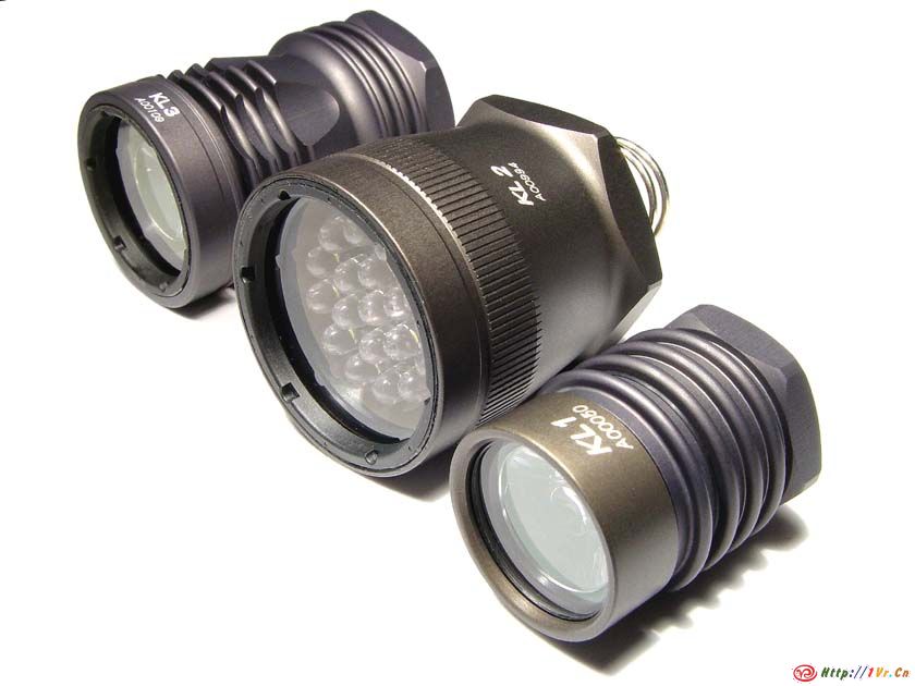 LED光源上的巨大进步,也引起了Surefire的注意.Surefire可以说是高端手电的代表,长期以来为军方和执法部门生产高质量的照明工具,包括手电,战术灯,激光瞄准装置等。大部分产品使用一次性锂电驱动,小巧高亮。Surefire的产品线很庞大齐全,各种配件更是让人眼花缭乱,所以当Surefire打算涉足LED电筒领域的时候,它是以生产LED灯头(作为灯泡灯头的一种可选替代)起步的。2002年,SF推出了KL1,KL2,KL3三款灯头,分别用于配合Surefire E系列,M系列和Classic系列(包括M2,C系,G系,P系)筒身。KL1,KL3使用了一颗LS 1W LED,配合NX05透镜,光通量标称17和19流明(实际没有什么区别),KL2则使用了19颗5mm白光LED,光通量标称27流明,电池寿命则取决于使用的筒身。稍晚一些,Surefire又推出了两档调光的L1(电筒而非灯头)以及混合使用LED和白帜灯泡的A2。Surefire虽然相对ARC,Inova等公司进入LED手电领域较晚,但还是体现出了自己的鲜明特色。由于Surefire的电筒全部使用锂电,不用考虑兼容负载能力较低的碱性电池等,所以Surefire采用了全整流设计(之前ARC等采用半整流设计),只要电池还能输出额定的电流,灯头的输出没有变化,放电曲线完全平直。又由于Surefire每个系列有多种不同电压的筒身,Surefire普遍采用了健壮性较强的电路,输入电压范围很宽,以KL1为例,输入2-9V电压都能正常工作,输出几乎不变,但是代价是电路效率相对专用电路较低。另外,SF这几款灯头也保持了Surefire的一贯优势,制造质量上乘。外观造型炫目美观(或者说够噱头),尤其是第一版的KL3,好似一个CPU散热器,这也在某种程度上体现了当时对大功率LED散热的过分担心。