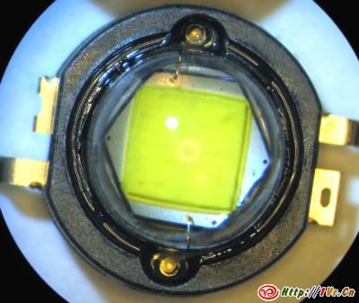 至于说到SSC的缺点,从一些使用的个例来看,SSC的荧光粉稳定性相对欠佳,有时候在电流较大,散热不好时会出现变色,衰减快等现象。SSC的产能相对Cree,Lumileds较低,这些都是量产手电较少采用SSC的原因。另外,使用同样口径的反光碗时,SSC的光斑会比Cree和Lux III大一些,不大利于远射,SSC一次透镜为较软较粘,沾上灰尘不易清理(个人经验是用棉签蘸水后轻轻擦拭)。
