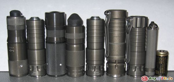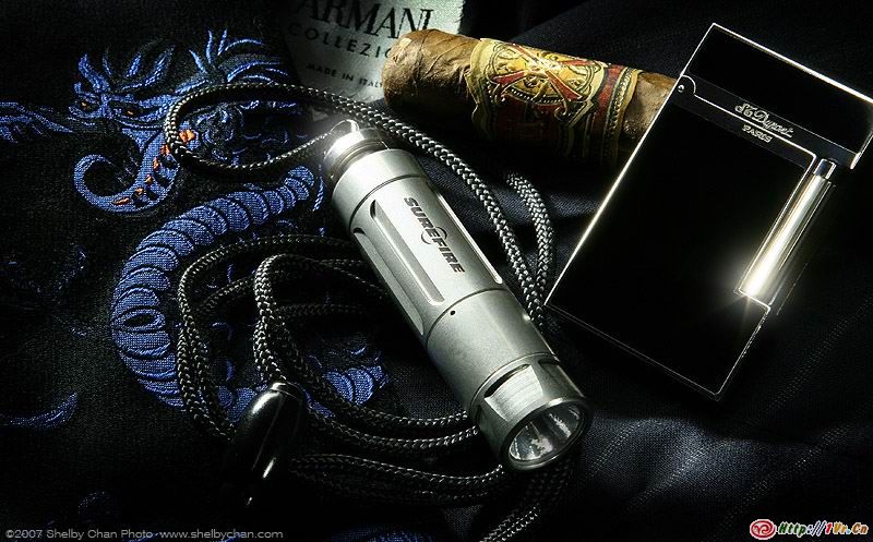 2007 Surefire目录里面,最独特的一款莫过于Titan,它和以往的Surefire手电可以说是截然不同,一改强悍的战术风格,而融入了更多的精致的东方元素。它是Surefire第一款使用CR2电池的手电,体积娇小。正如其名称,Titan的外壳由钛合金制成,使用反光碗+SSC LED,最高输出80流明,可以近乎无级(1000级)调光。首批Titan生产1000支,以后的将改为价格比较平民化的铝合金版本,据说这1000支配额已经被订空。