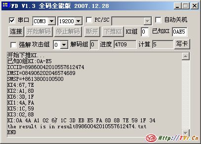 抓了一张FD推码的图,然后PS了一下,没想到唬住不少人哦,友情提示,扫卡的同学不要将完整的KI和IMSI,ICCID等信息透漏给别人,否则很容易会让别人复制出一张同样的sim卡哦.