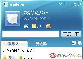 百度杀入即时通讯软件的队伍啦,看到招聘广告还说有知名即时通讯软件开发经验者优先,明显是冲着挖墙角来的.今天得到了别人的百度Hi邀请,登陆上了.我也能给别人发送邀请.