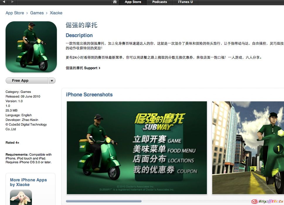 为赛百味开发的iPhone游戏终于上线了,最终是以free形式上线.